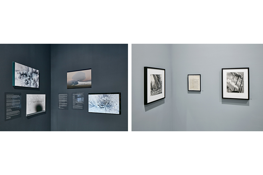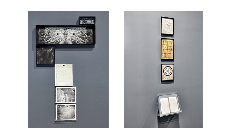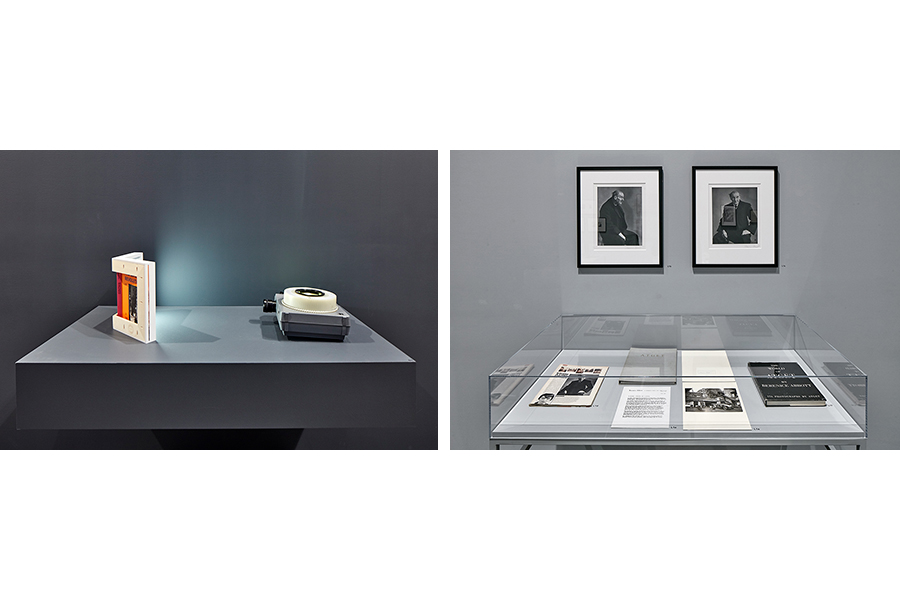 Early in my research, I discovered that I was associating the various aspects of Abbott’s practice to those of artists working today. I began to develop a project highlighting these connections. My plan was to pair Abbott’s works with contemporary pieces that derived from photography, but were executed in a variety of media. This project provided me with a form to reflect on how the range of Abbott’s practice expands the parameters of an artistic discipline beyond the limitations of being either singular or plural. In the fall of 2015, Dan Byers, a senior curator at Institute of Contemporary Art, Boston, commissioned me to realize this project for his exhibition The Artist’s Museum (November 15, 2016–March 26, 2017). I titled my work The Earth Is a Magnet, after a comment of Abbott’s in an interview made for the 1992 documentary Berenice Abbott: A View of the Twentieth Century. In the clip Abbott expresses her delight in this scientific phenomenon, revealing the genuine curiosity that is so central to her work. The Earth Is a Magnet plays with the principle of attraction and interconnectivity in a mirroring installation of artworks across a two-room divide.